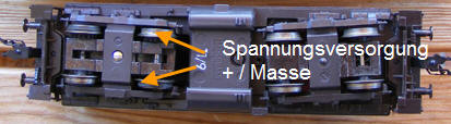 Spannungsführende Kontaktleiter. Märklin hat im Gegensatz 3