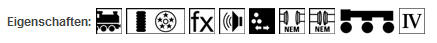 Über die Symbole im Katalog werden die Eigenschaften der jeweiligen Lokmodelle vom Hersteller gekennzeichnet siehe Darstellung Märklin von link nach rechts: Fahrgestell Metall, Digital u. Hochleistungsmotor, Digitaldecoder, Geräuschelektronik, 3Licht Spitzensignal, Kurzkupplung, Kurzkupplung mit Kulissenführung, Sondermodell Kennzeichnung, Epoche IV |